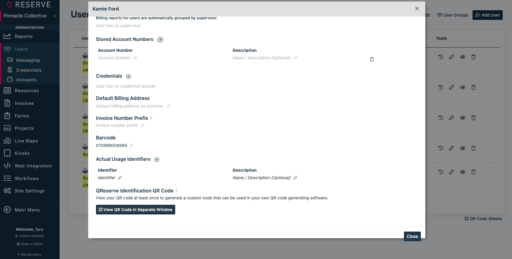 For both users and resources, you have the option of inputting your own barcodes, or using the QR codes that QReserve generates (note that the QR codes will only work with a 2D barcode scanner).