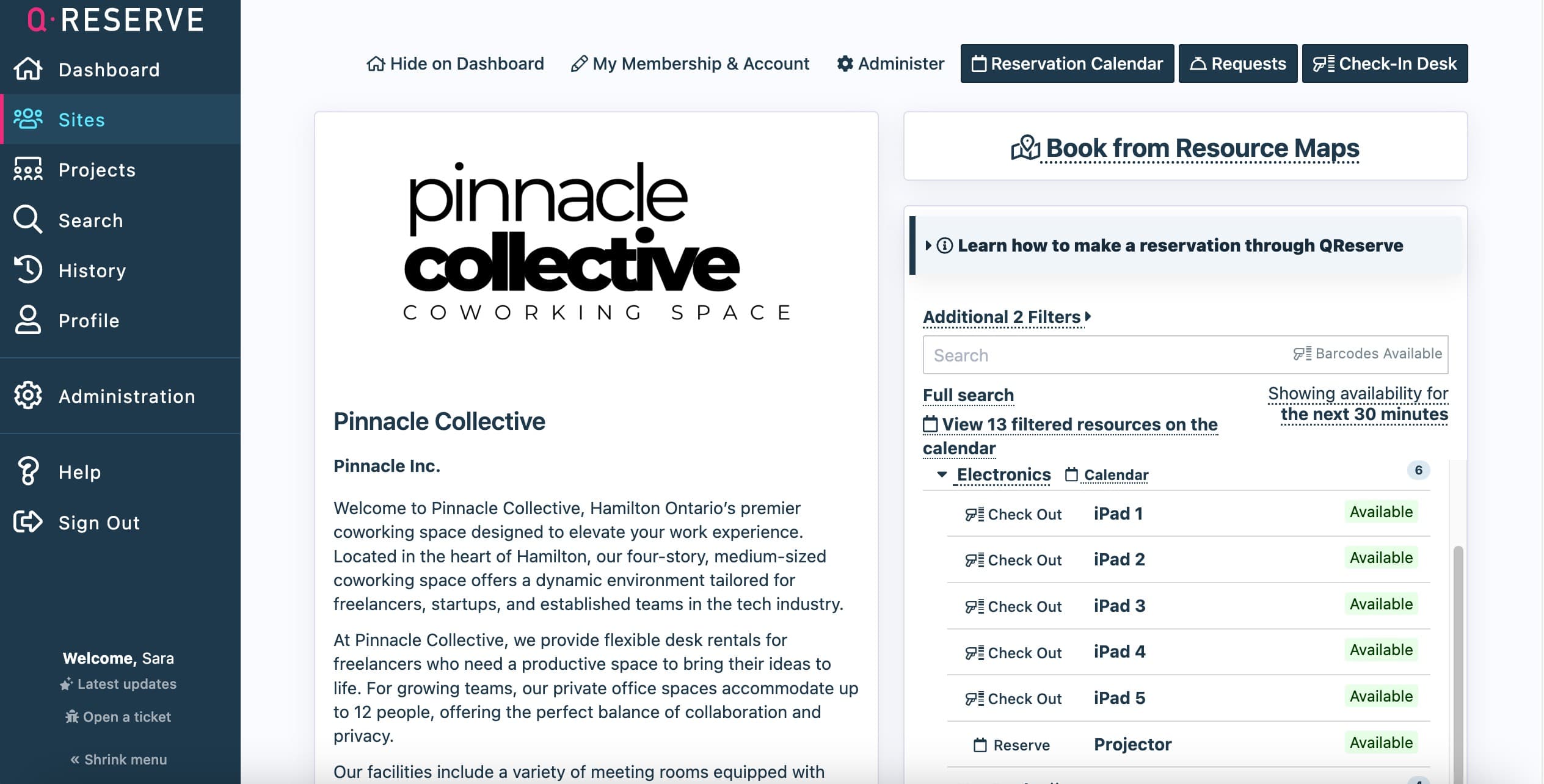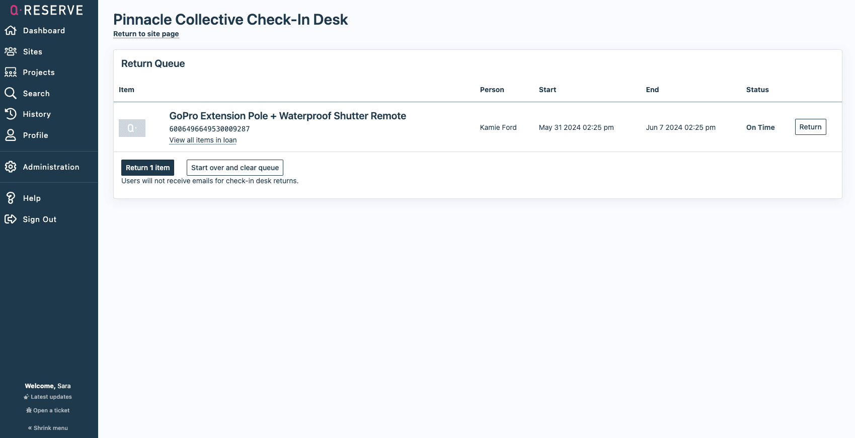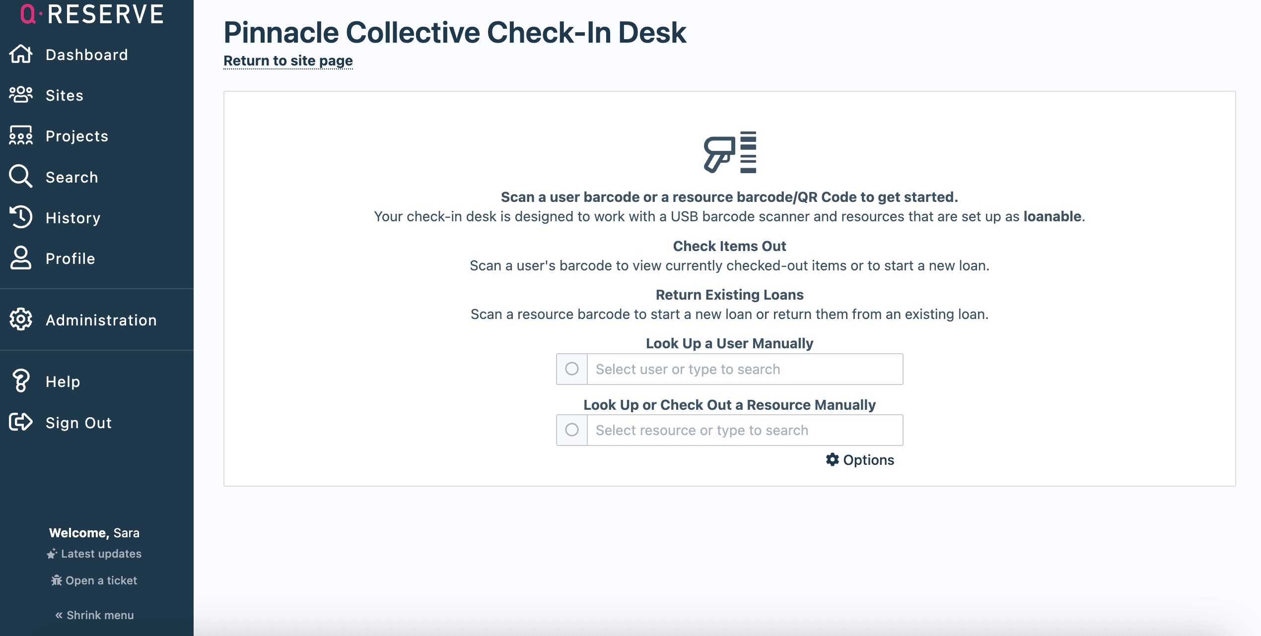 The QReserve Check-In Desk is an easy way for users to check resources in and out (electronic equipment, books, etc). This feature works alongside a standard barcode scanner that you can easily find for purchase online.